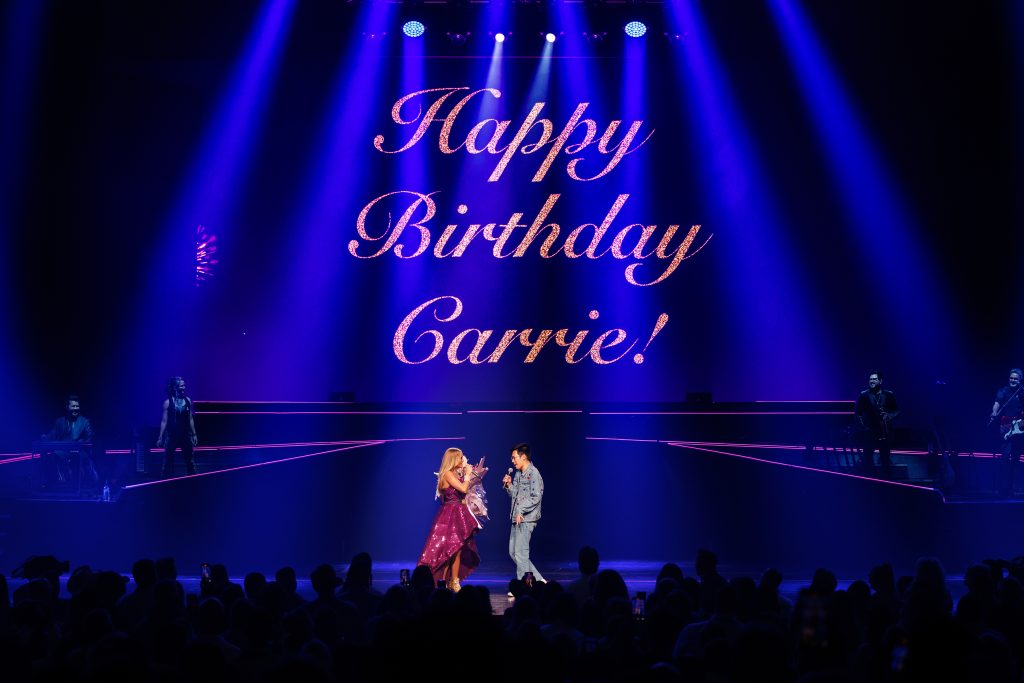 LAS VEGAS, NV (MARCH 11, 2024) – Over the weekend, Resorts World Theatre headliner and 8-time GRAMMY® Award winner and country music superstar, Carrie celebrated her birthday with special on-stage moments during her March 9, 2024, REFLECTION: The Las Vegas Residency show. During her performance of fan-favorite “All-American Girl,” audience members surprised Carrie as the room became illuminated by (color) light-up wristbands that blinked with the song. Following the conclusion of the song, Carrie beamed as the crowd sang “Happy Birthday” during a special on-stage birthday cake presentation for the star. Carrie’s official birthday was yesterday, March 10, 2024.