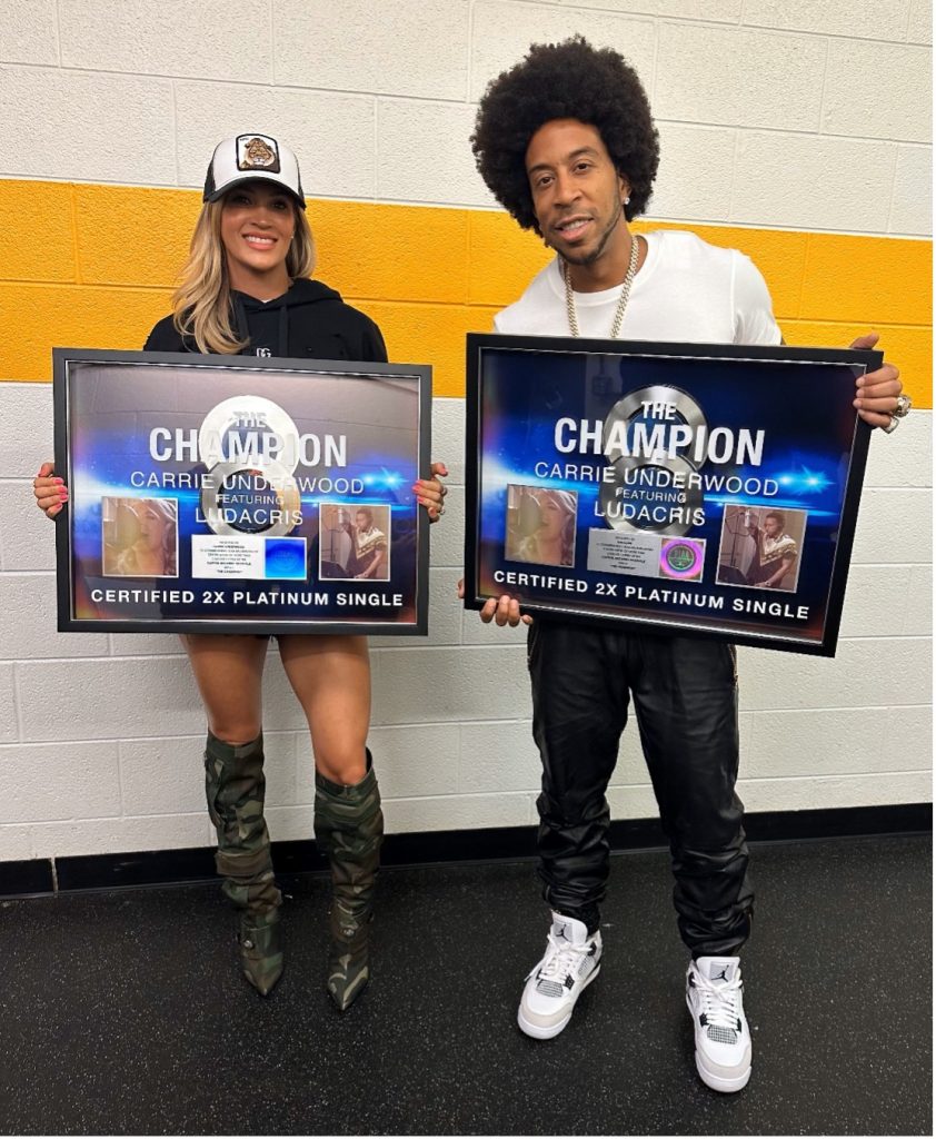 Carrie Underwood and Ludacris Celebrate RIAA Double Platinum for “The Champion”
